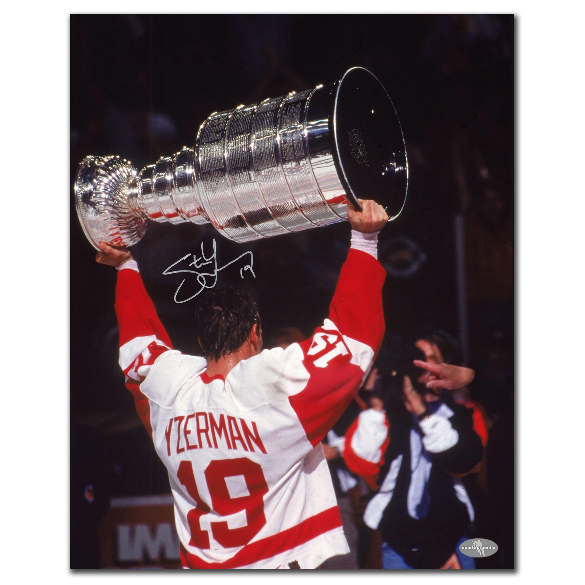 This 16x20 photo is hand signed by Steve Yzerman.