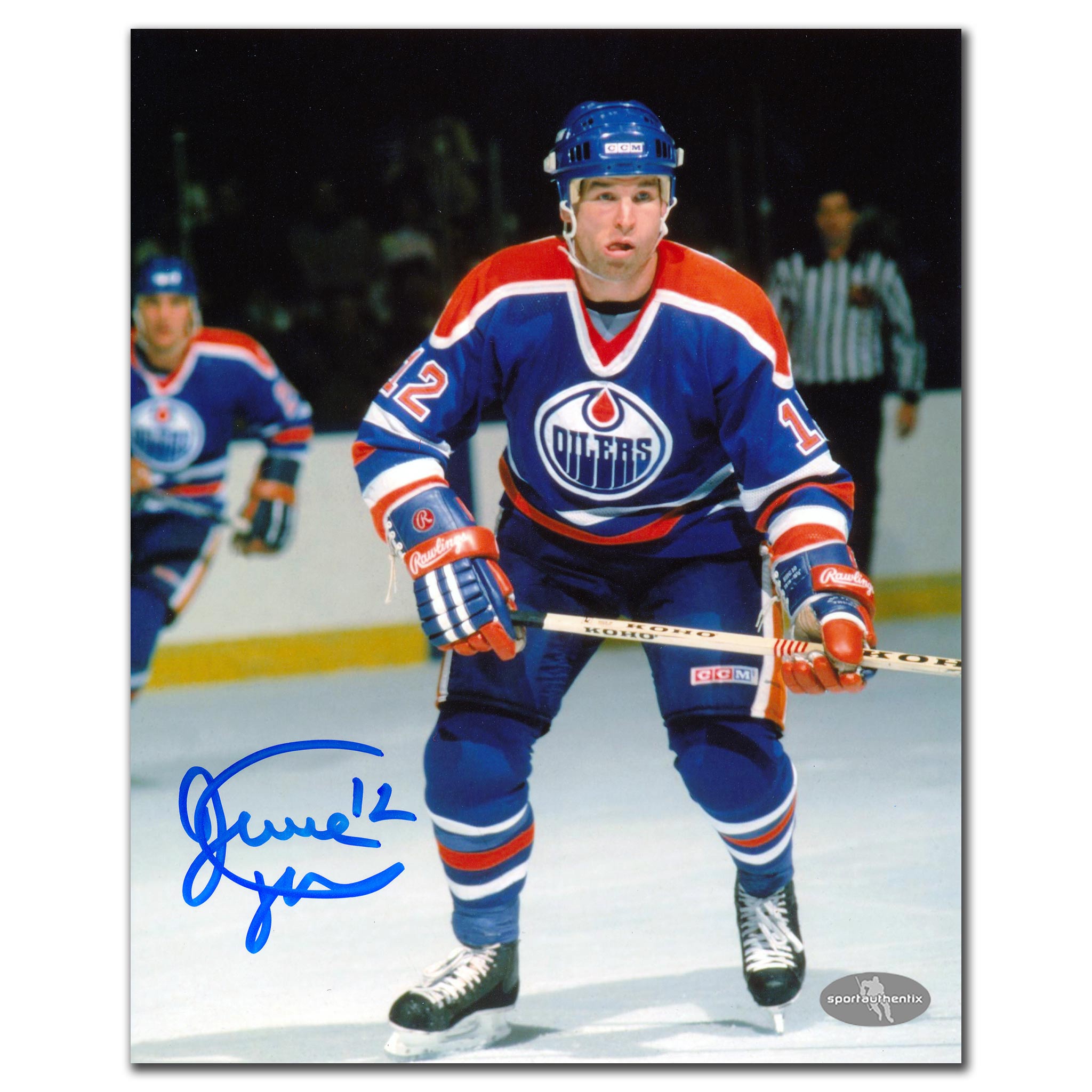 This is a Dave Hunter Edmonton Oilers Autographed 8x10.