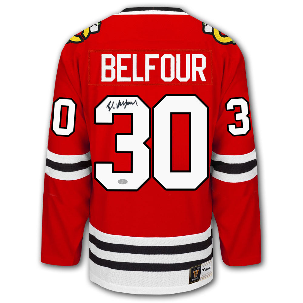 This is a NHL official licensed Ed Belfour Chicago Blackhawks Fanatics Vintage Autographed Jersey.