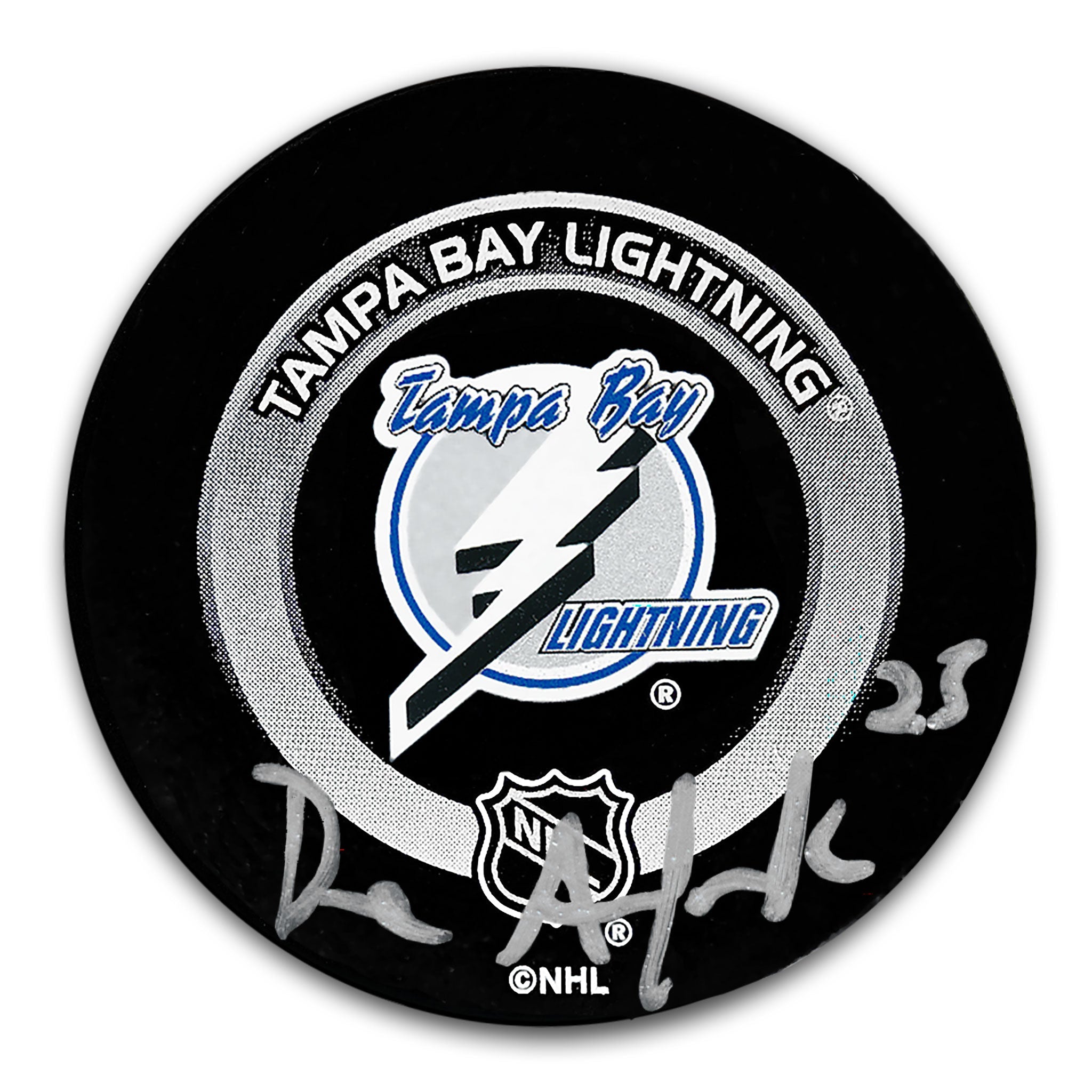 This is a Dave Andreychuk Tampa Bay Lightning Autographed Official Game Puck.