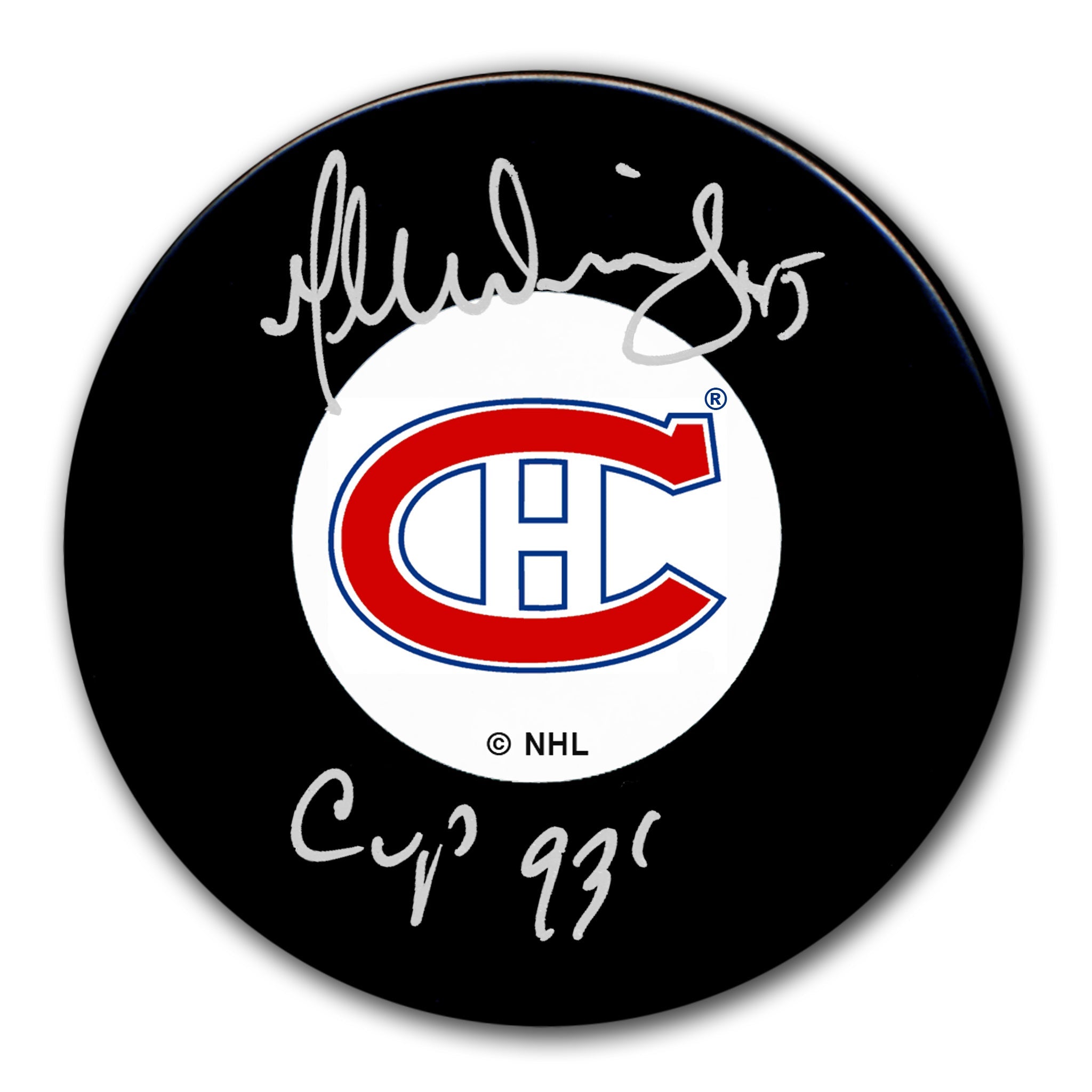 This is a Gilbert Dionne Montreal Canadiens 1993 Stanley Cup Original 6 Autographed Puck.