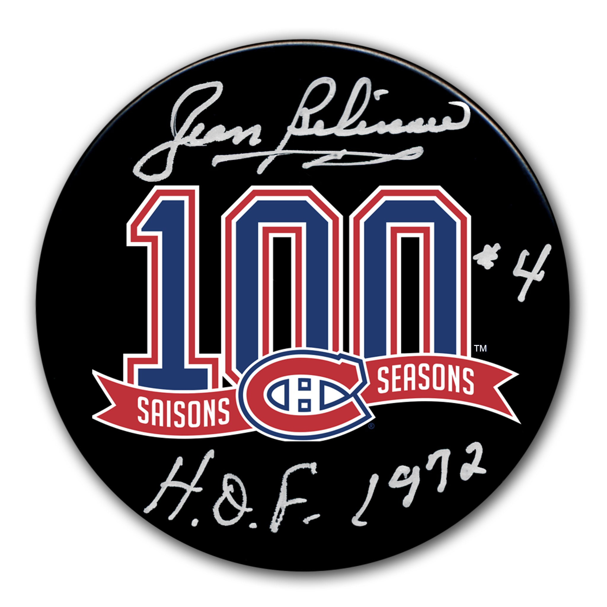 Jean Beliveau Montreal Canadiens 100th Anniversary Autographed Puck