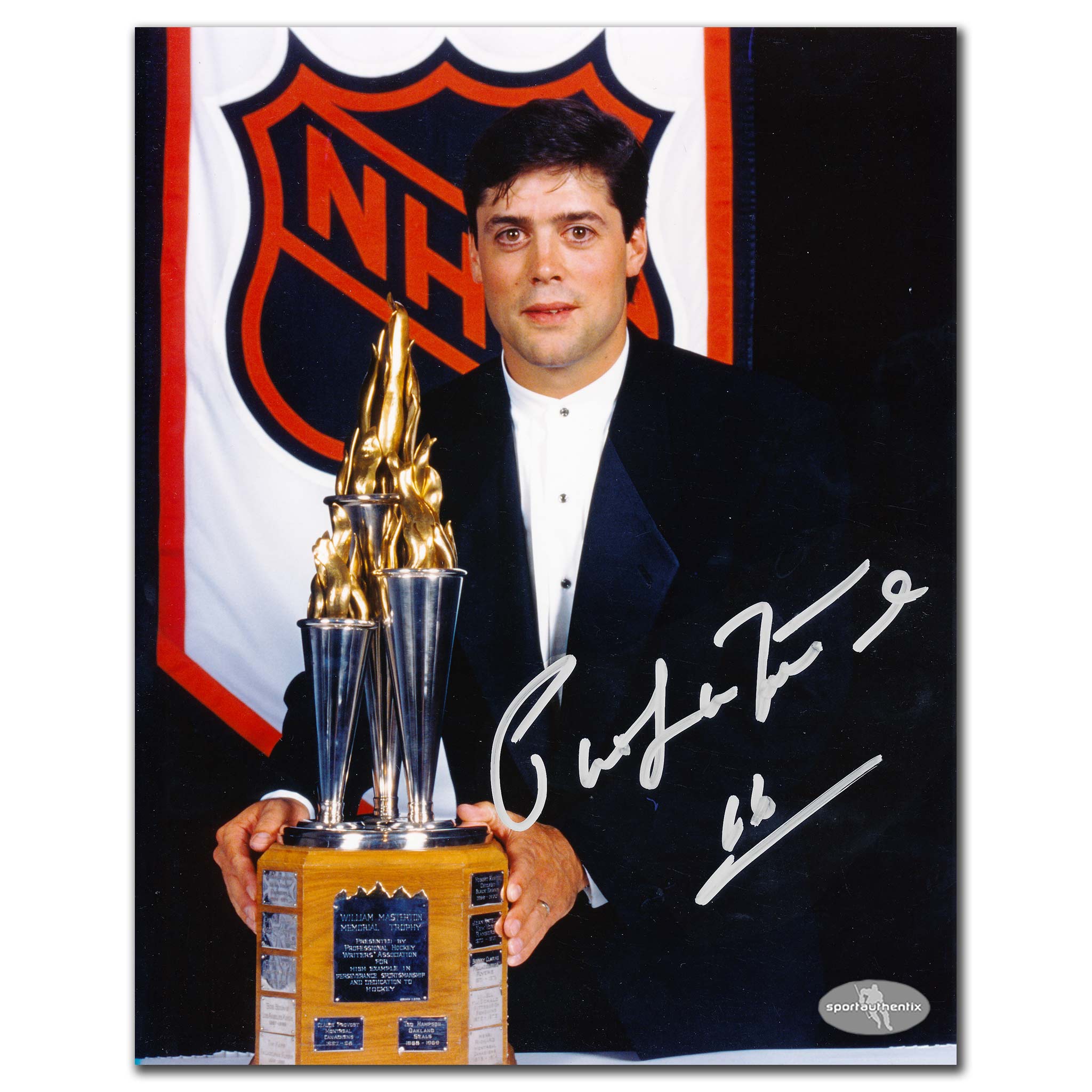 This is a Pat Lafontaine Buffalo Sabres 1995 Bill Masterton Autographed 8x10.