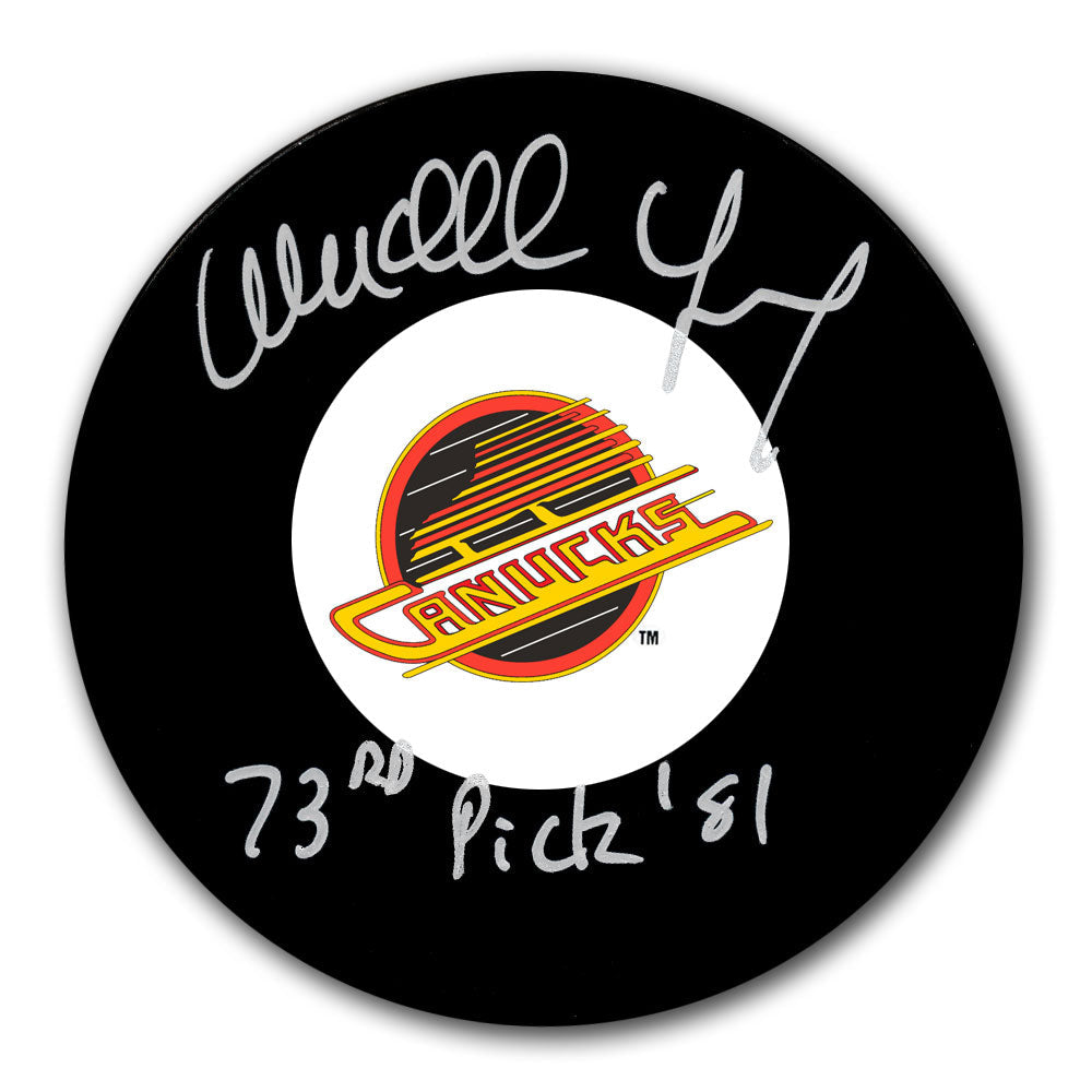 Wendell Young Vancouver Canucks 73rd Pick 1981 Autographed Puck