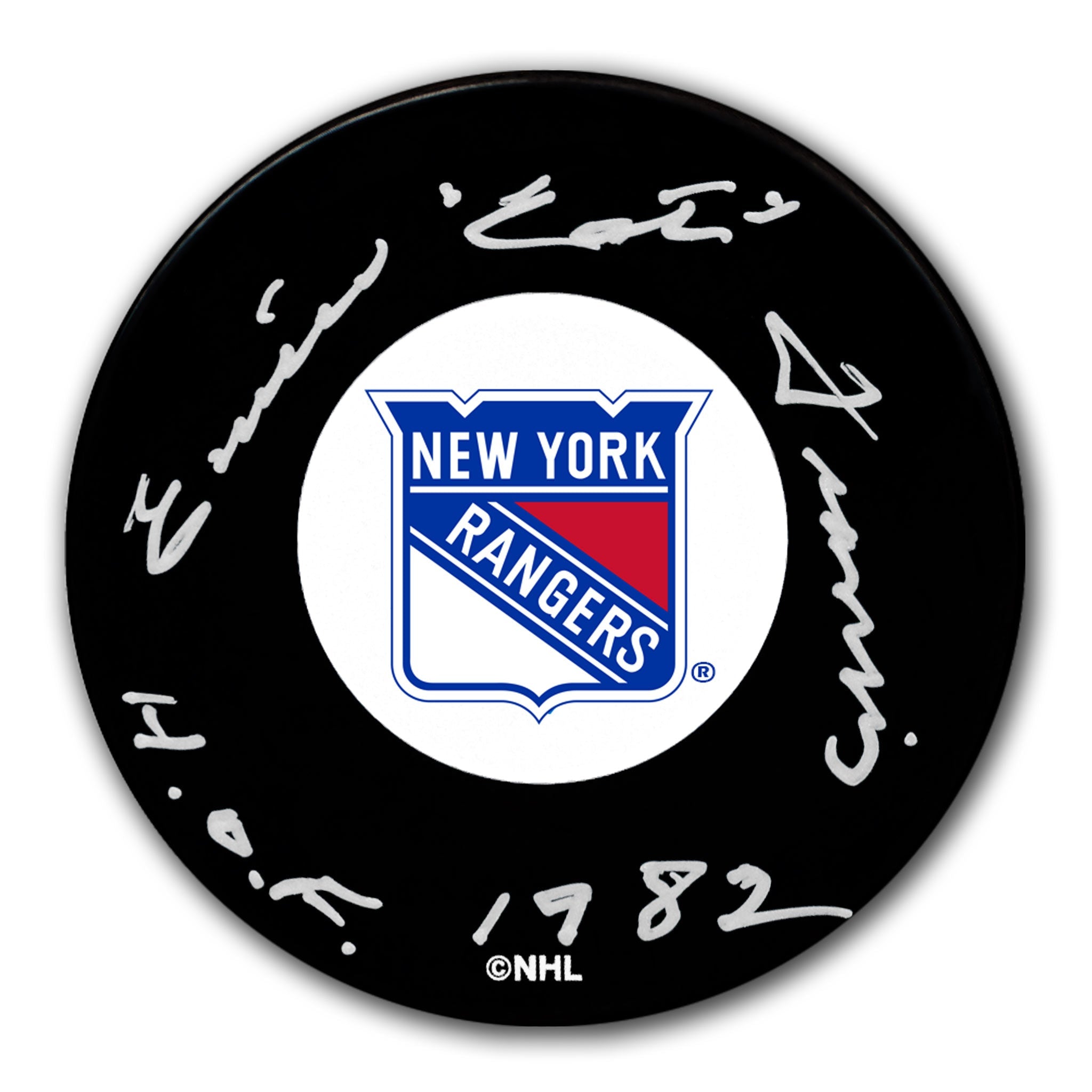 This is an Emile Francis New York Rangers HOF Autographed Puck.