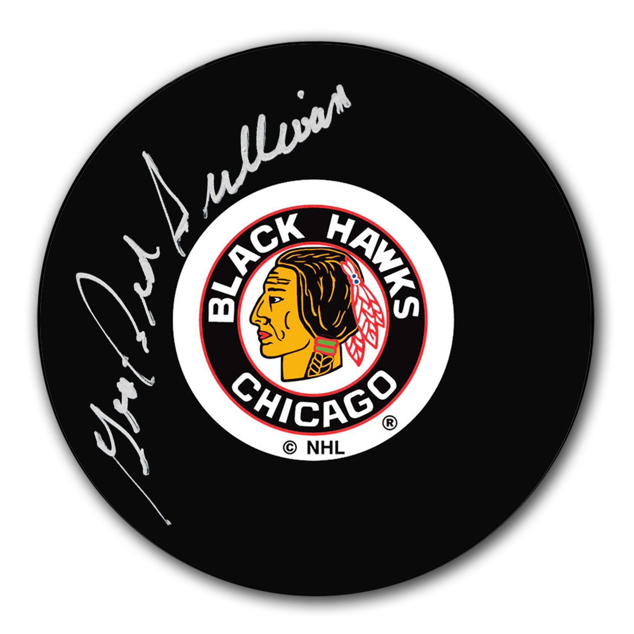 This is a George Sullivan Chicago Blackhawks Autographed Puck.
