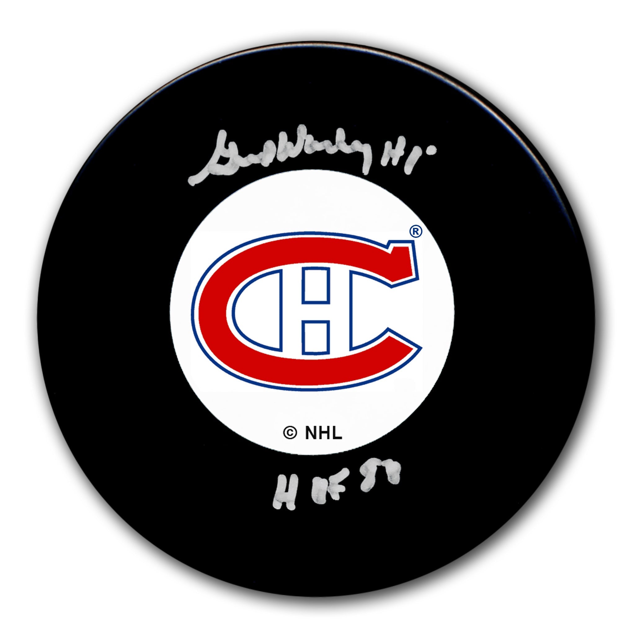 This is a Gump Worsley Montreal Canadiens HOF Original 6 Autographed Puck.