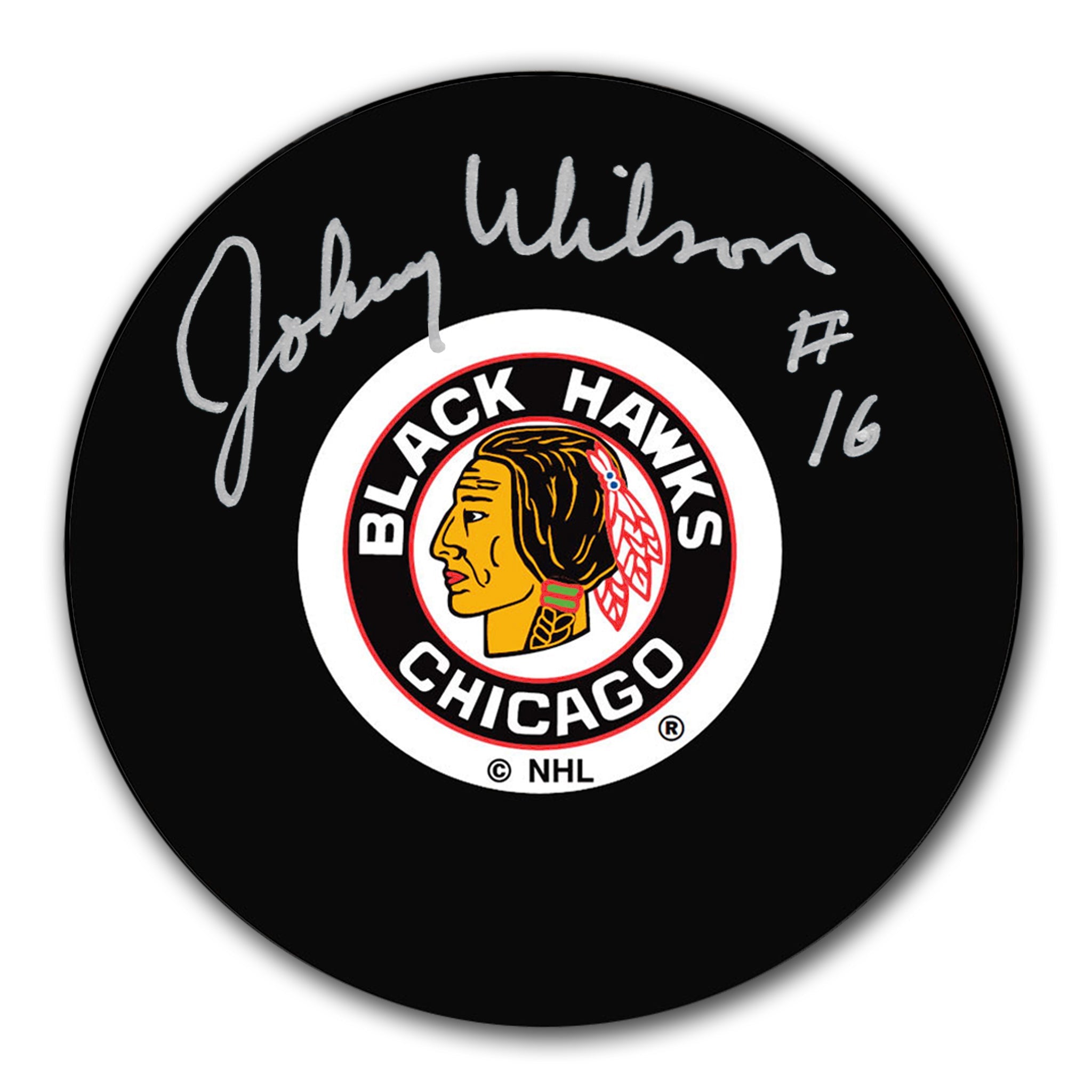 This is a Johnny Wilson Chicago Blackhawks Autographed Puck.